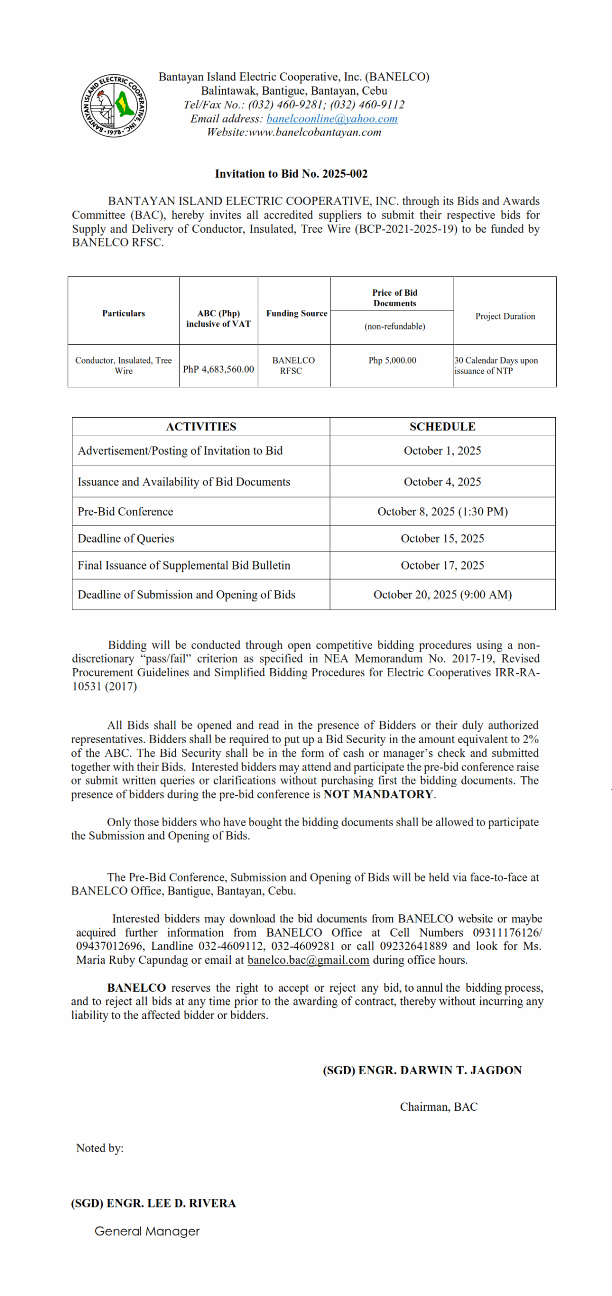 INVITATION TO BID NO. 2025-002