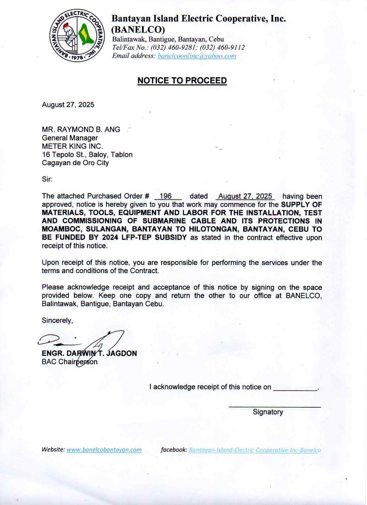 Notice to Proceed for ITR 2024-004